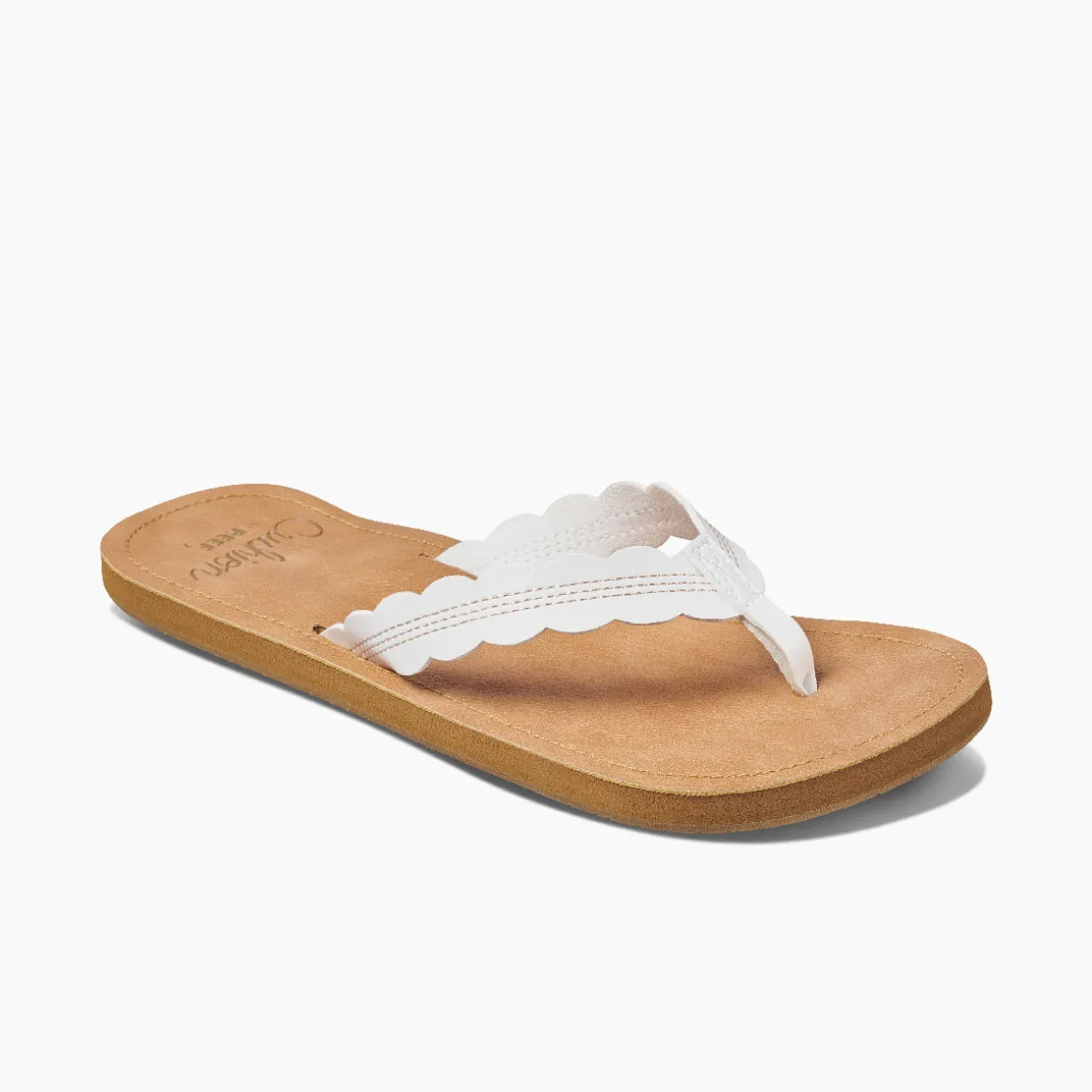 Beach or city girl? These graceful sandals let you be both: Water friendly vegan leather is made for playing in the waves. The raw edge scallop is chic for picnics and urban exploring. With anatomic arch support and a durable outsole.