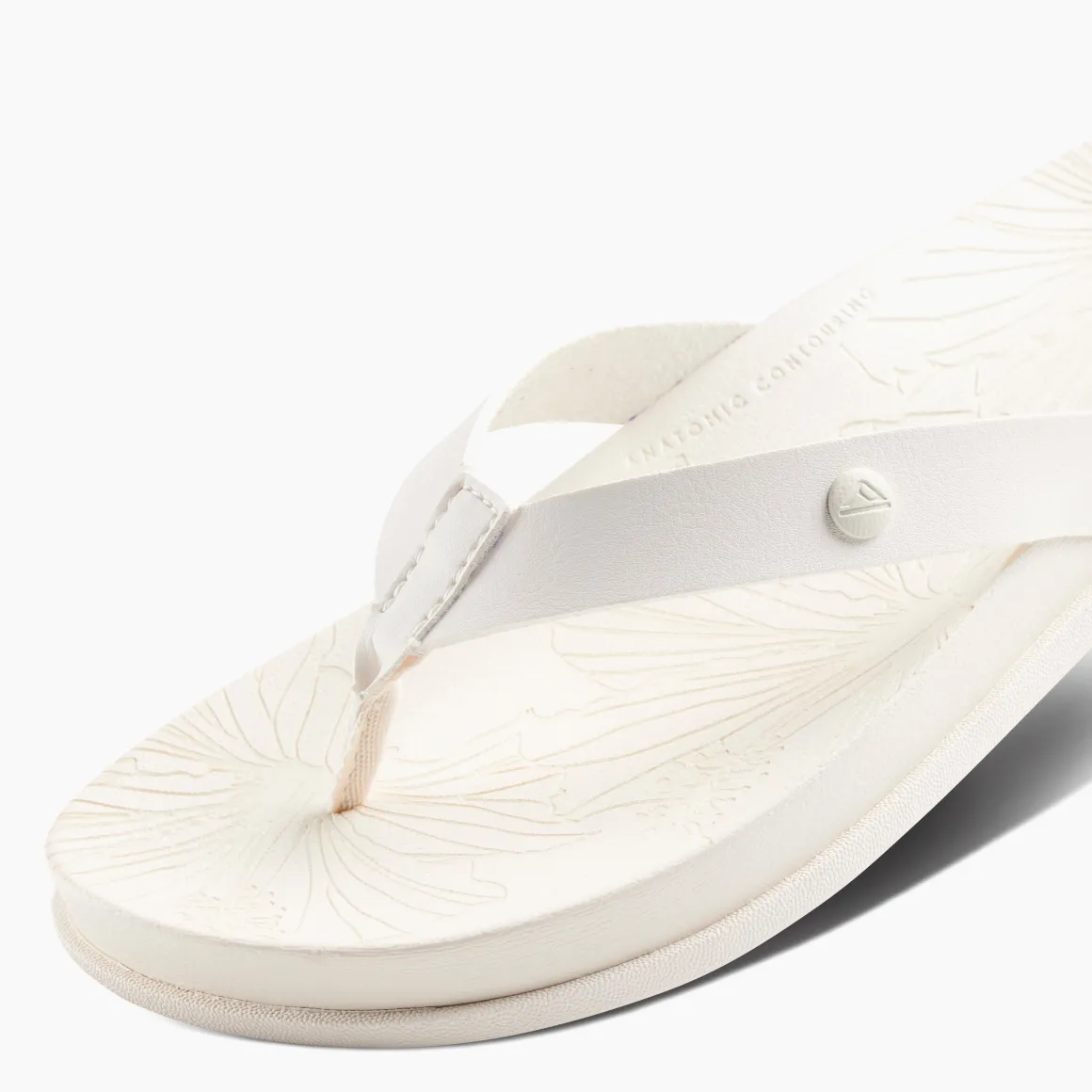Cruise around in these cushiony soft sandals, designed for day-to-night go-everywhere style. Pretty details like a lasered tropical footbed pattern and sleek, vegan leather straps make these your new grab-and-go favorites.