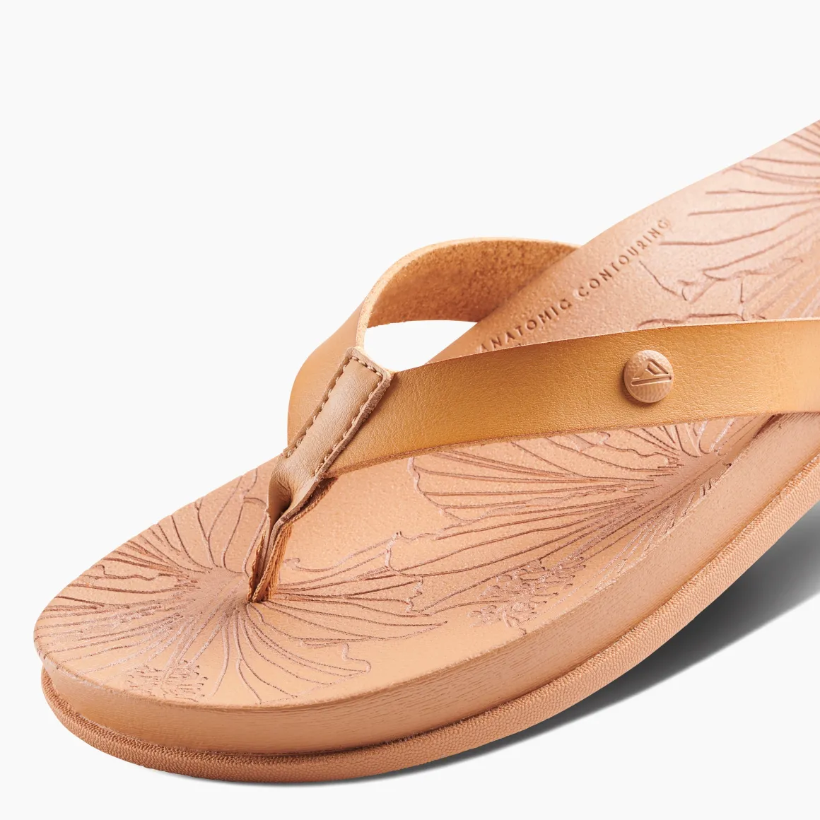 Cruise around in these cushiony soft sandals, designed for day-to-night go-everywhere style. Pretty details like a lasered tropical footbed pattern and sleek, vegan leather straps make these your new grab-and-go favorites.