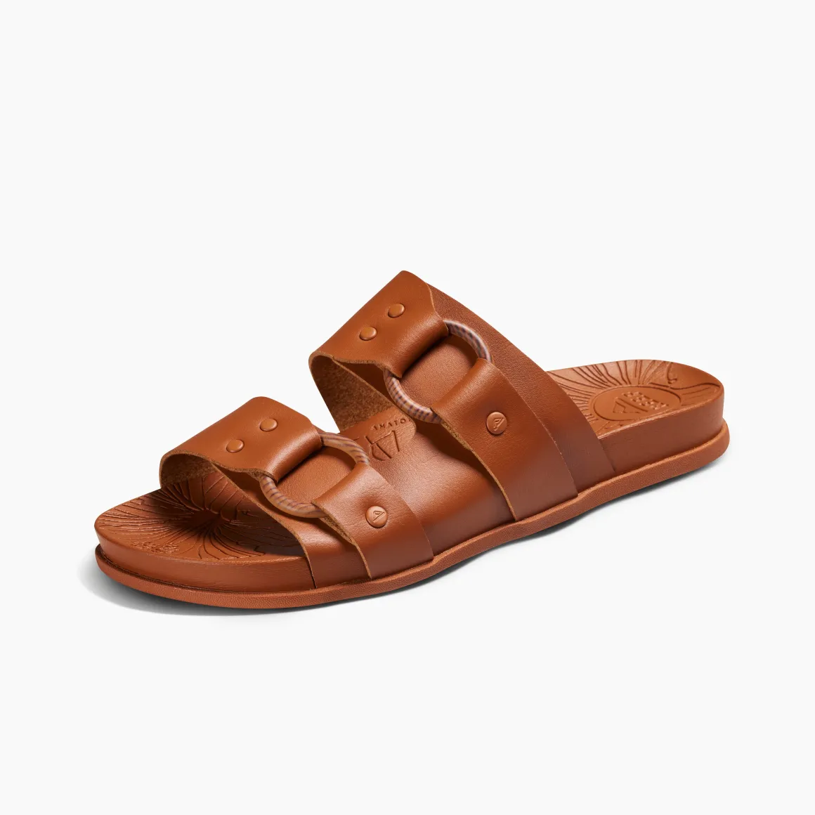 This chunky, built-up look is a must, as is the amazing cushioned comfort. With nature-inspired details and soft vegan leather straps in a classic two-bar buckled design, this sandal will serve you from day to night in easy, casual chic style.