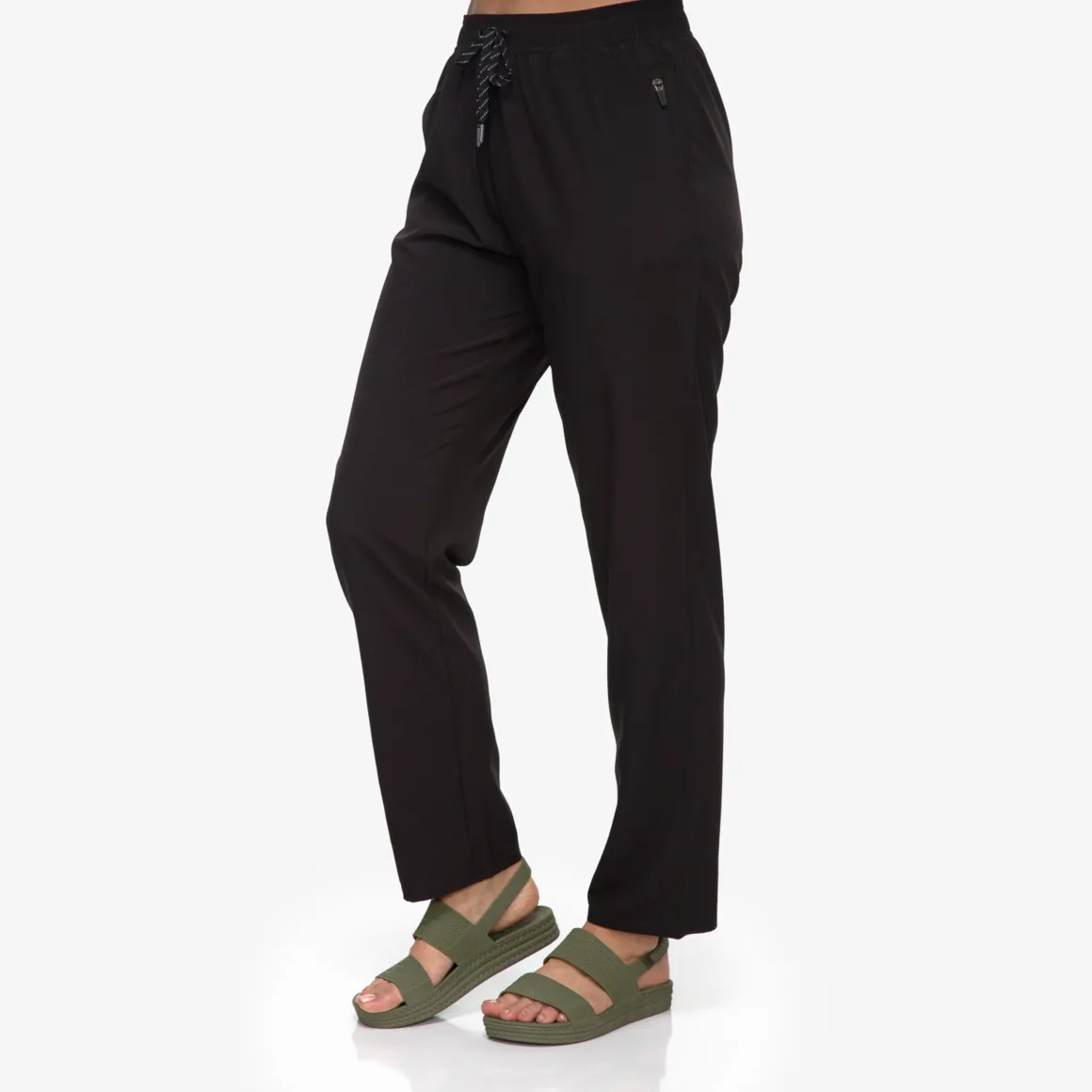 These aren’t like the other pants sitting in your drawer: you’re going to live in these, thanks to our light weight woven recycled poly and spandex mix. Perfect fit, eco-minded, total comfort.