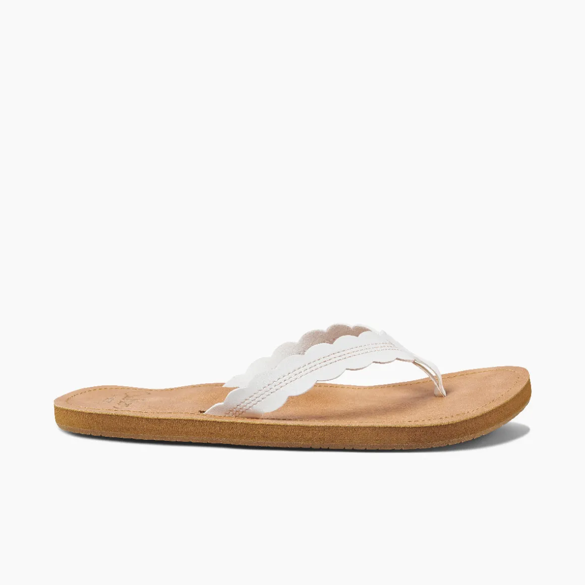 Beach or city girl? These graceful sandals let you be both: Water friendly vegan leather is made for playing in the waves. The raw edge scallop is chic for picnics and urban exploring. With anatomic arch support and a durable outsole.
