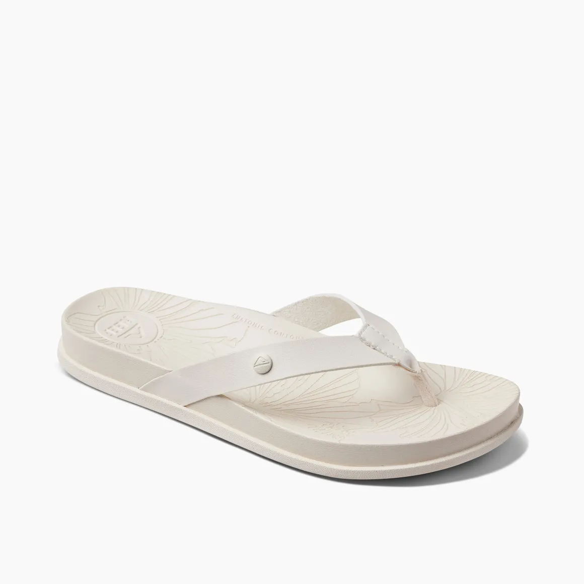 Cruise around in these cushiony soft sandals, designed for day-to-night go-everywhere style. Pretty details like a lasered tropical footbed pattern and sleek, vegan leather straps make these your new grab-and-go favorites.
