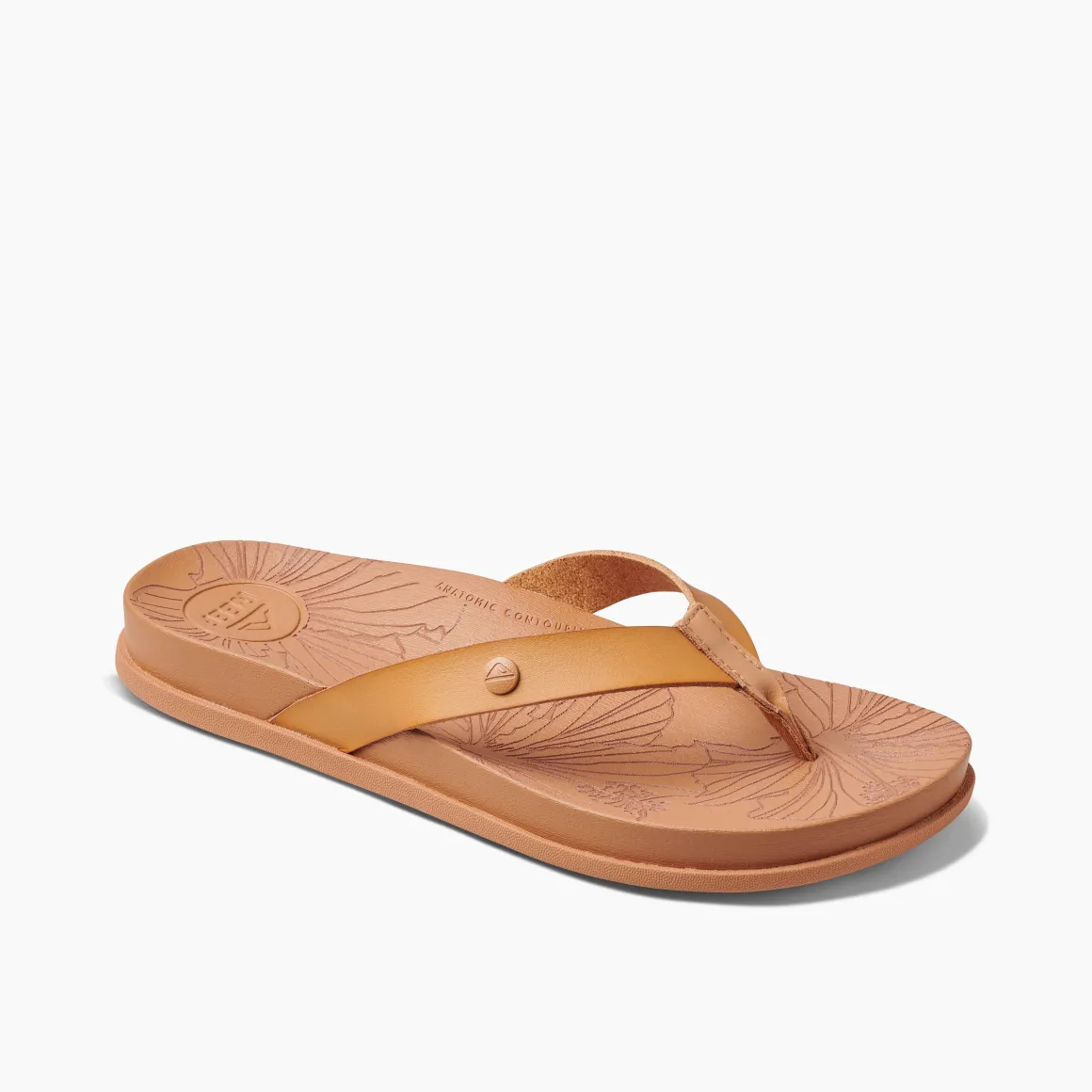 Cruise around in these cushiony soft sandals, designed for day-to-night go-everywhere style. Pretty details like a lasered tropical footbed pattern and sleek, vegan leather straps make these your new grab-and-go favorites.