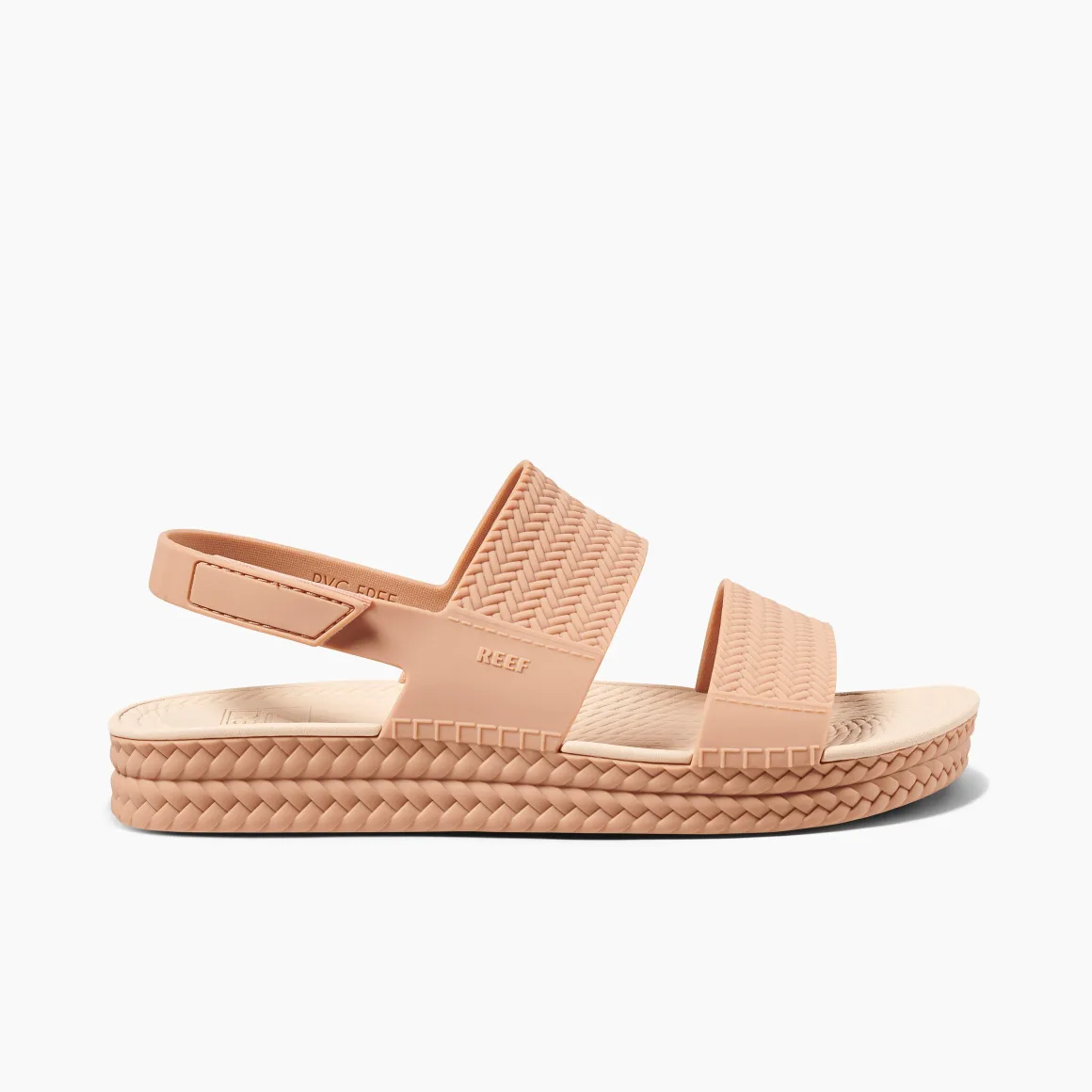 Check out the espadrille-like braids along the side wall of the Water Vista, taking you back to your best beach vacation. And the wide straps with jute-like, ropey carvings. This sandal’s got style. But the best part is that it’s all made of water-friendly materials which means wash it off and go to the next thing, all day, all season. Low maintenance. Like you.