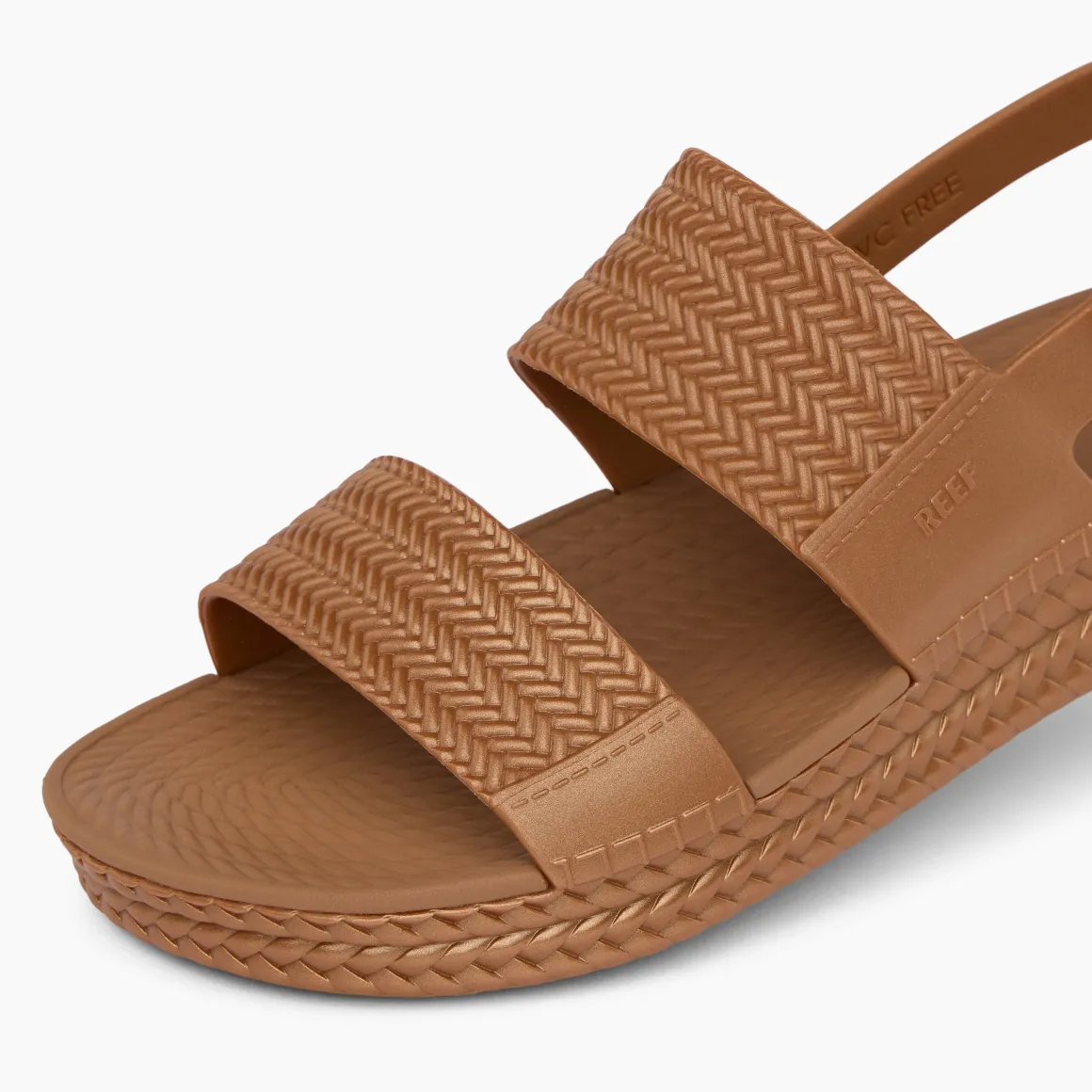 Check out the espadrille-like braids along the side wall of the Water Vista, taking you back to your best beach vacation. And the wide straps with jute-like, ropey carvings. This sandal’s got style. But the best part is that it’s all made of water-friendly materials which means wash it off and go to the next thing, all day, all season. Low maintenance. Like you.